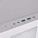 El View 270 TG ARGB Plus Snow incluye tres ventiladores ARGB Lite de 120 mm: dos laterales para la entrada de aire y otro en la parte trasera del chasis para la salida de aire. Las conexiones en cadena para el control de ventiladores ARGB y PWM de 5 V simplifican el cableado y la iluminación se puede controlar mediante el software de placa base de Asus, Gigabyte, MSI y ASRock.